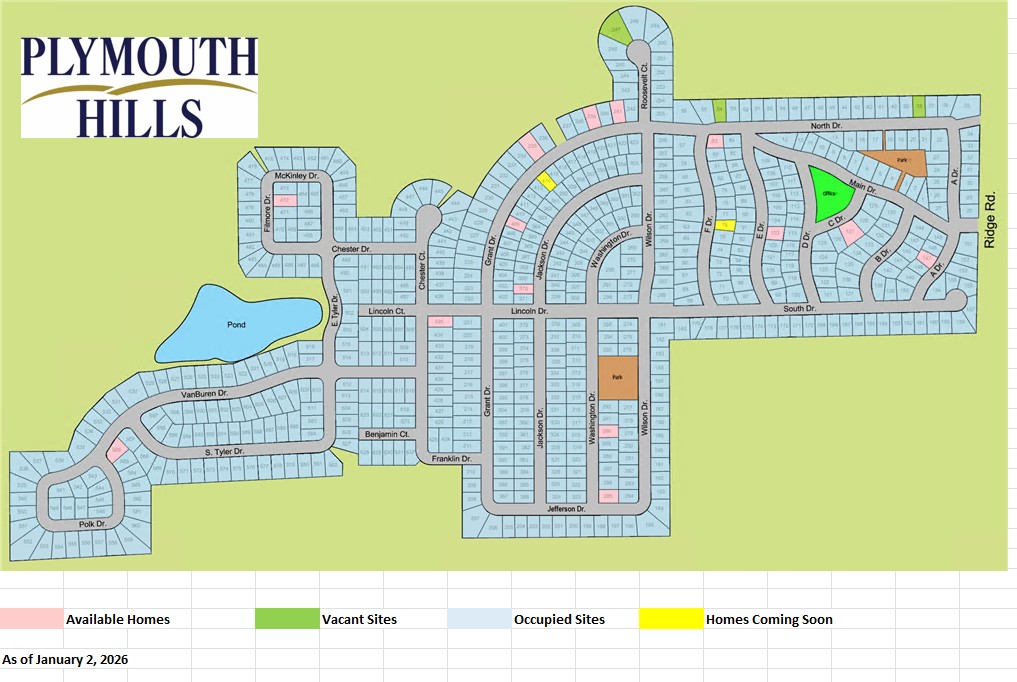 Come Home to Plymouth Hills. Just minutes from downtown Plymouth, Plymouth Hills is a meticulously designed manufactured housing community that offers the perfect blend of comfort, convenience, and community living. Our community is a testament to modern living, providing residents with a serene, close-knit neighborhood while enjoying all the advantages of a well-connected urban lifestyle. Residents can enjoy easy access to local shopping centers, dining options, entertainment venues, and excellent schools, all within a short distance. Our community features modern, energy-efficient manufactured homes designed for contemporary living. These homes come in a variety of sizes and floor plans to cater to diverse family needs and lifestyles, ensuring that you find the perfect fit for your family. Plymouth believe in fostering a strong sense of community among our residents. Regularly scheduled community events and activities provide opportunities to connect with neighbors and build lasting friendships. At Plymouth Hills, we take pride in creating a welcoming, family-oriented community. Come and experience the perfect blend of suburban serenity and urban convenience in Plymouth Hills.